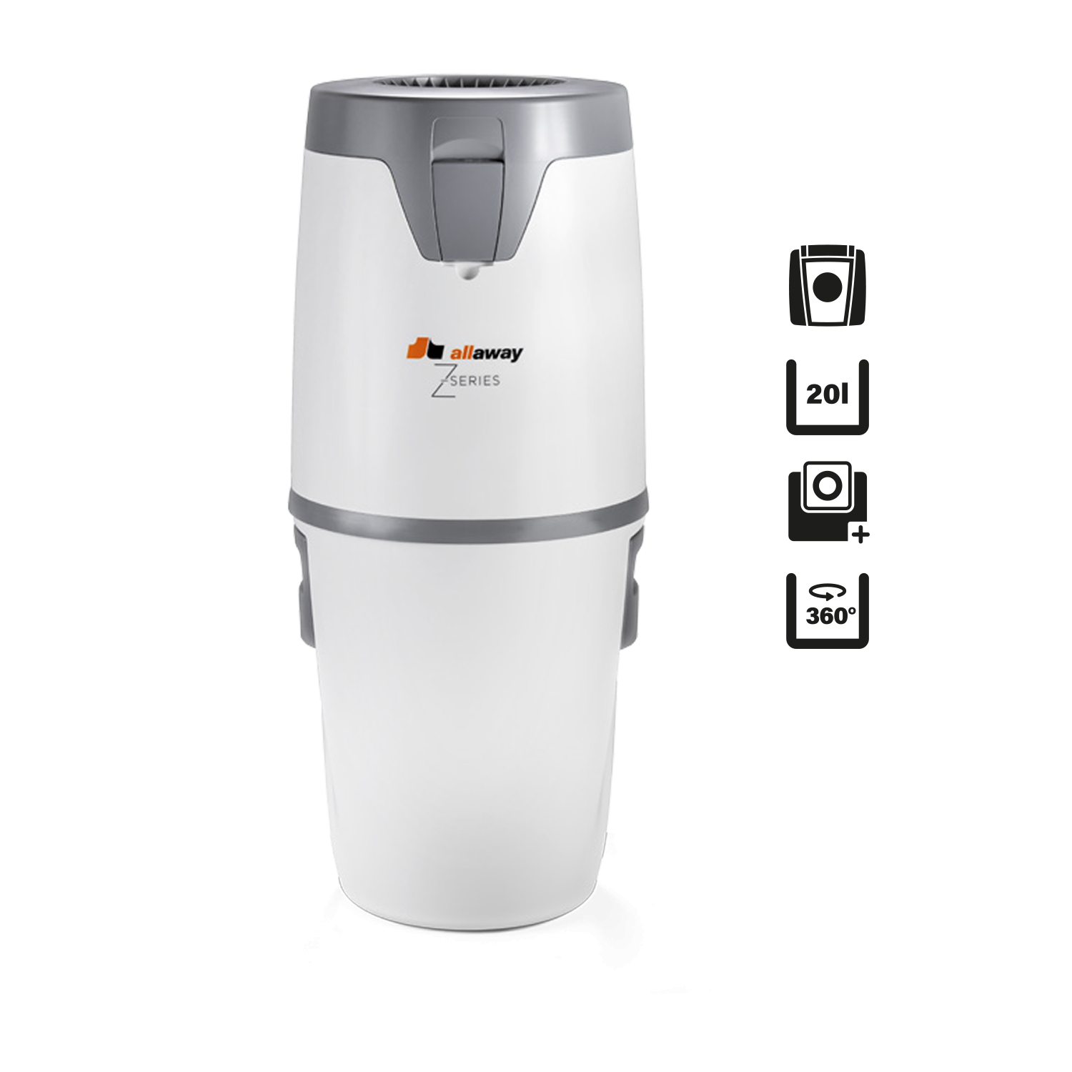 360 En stor støvbeholder. De robuste håndtakene og installasjonen av beholderen i en hvilken som helst posisjon på Zi- og Z-modellen gjør det enkelt å bytte posen.
